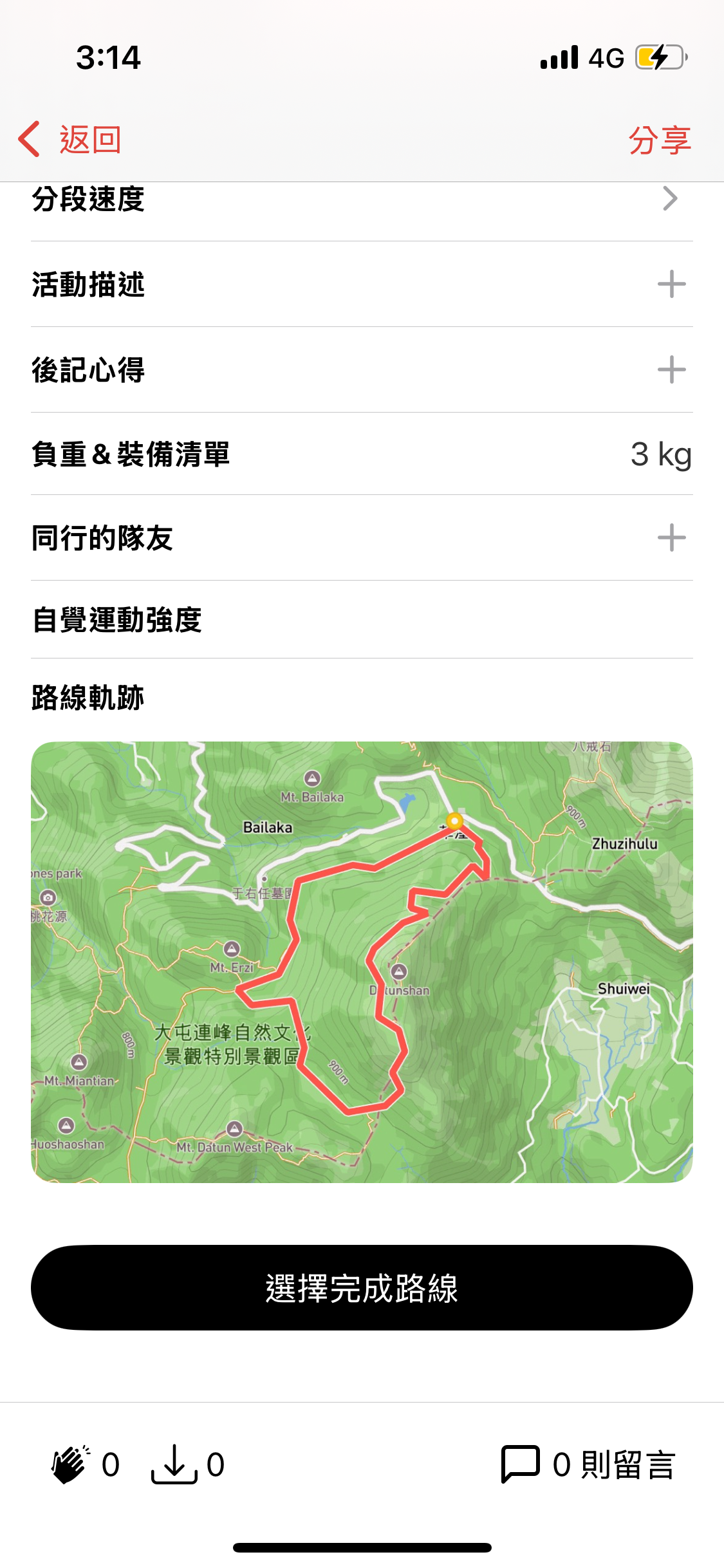 我的卻只有路線軌跡
